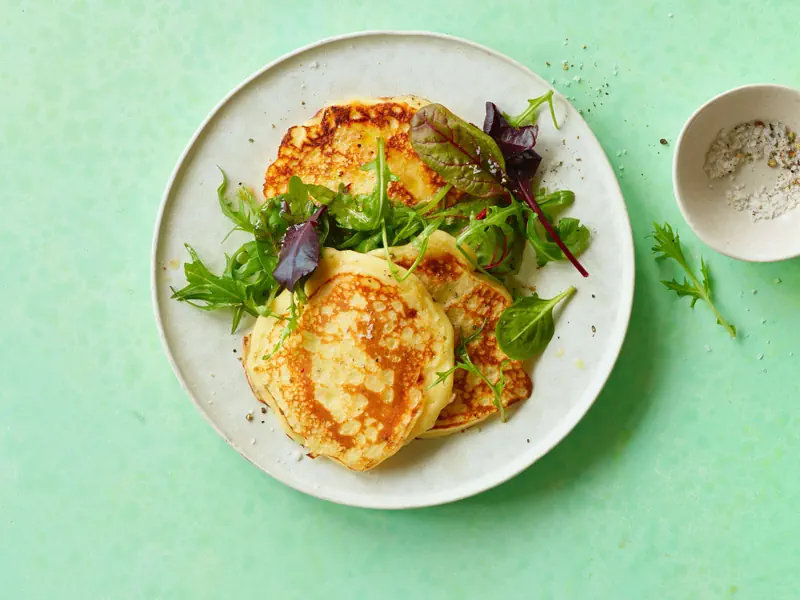 Pikant: Teig mit Pfeffer würzen, Pancakes mit Salat servieren. Süss: Pancakes mit Zimtzucker und Saisonfrüchten oder Kompott anrichten.